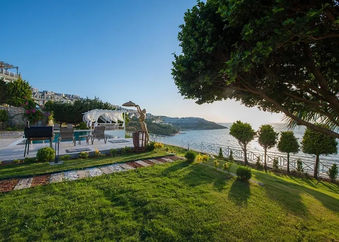 Bargylia/Barbyliaから2.5km離れたBodrum'Da Denize Sifir Muhtesem Villa Boss 1はテラス付き5のベッドル-ムの宿泊施設です. 海辺のヴィラには,部屋内のバルコニ-,座席 とテレビが備わっています.